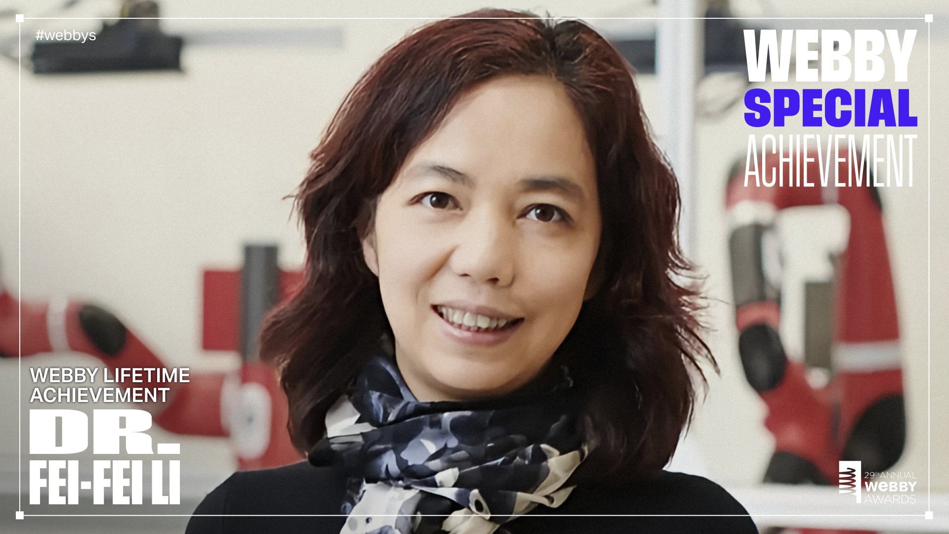 The 29th Annual Webby Awards is honoring Dr. Fei-Fei Li as the 2025 Webby Lifetime Achievement recipient for her pioneering contributions to AI research, her efforts to promote diversity and equity in technology, and her vision for a more inclusive digital future.