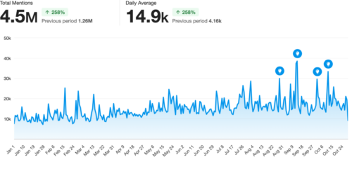 People are spending more time engaging with social media than ever before, so it is unsurprising this conversation has remained constant throughout the year.
