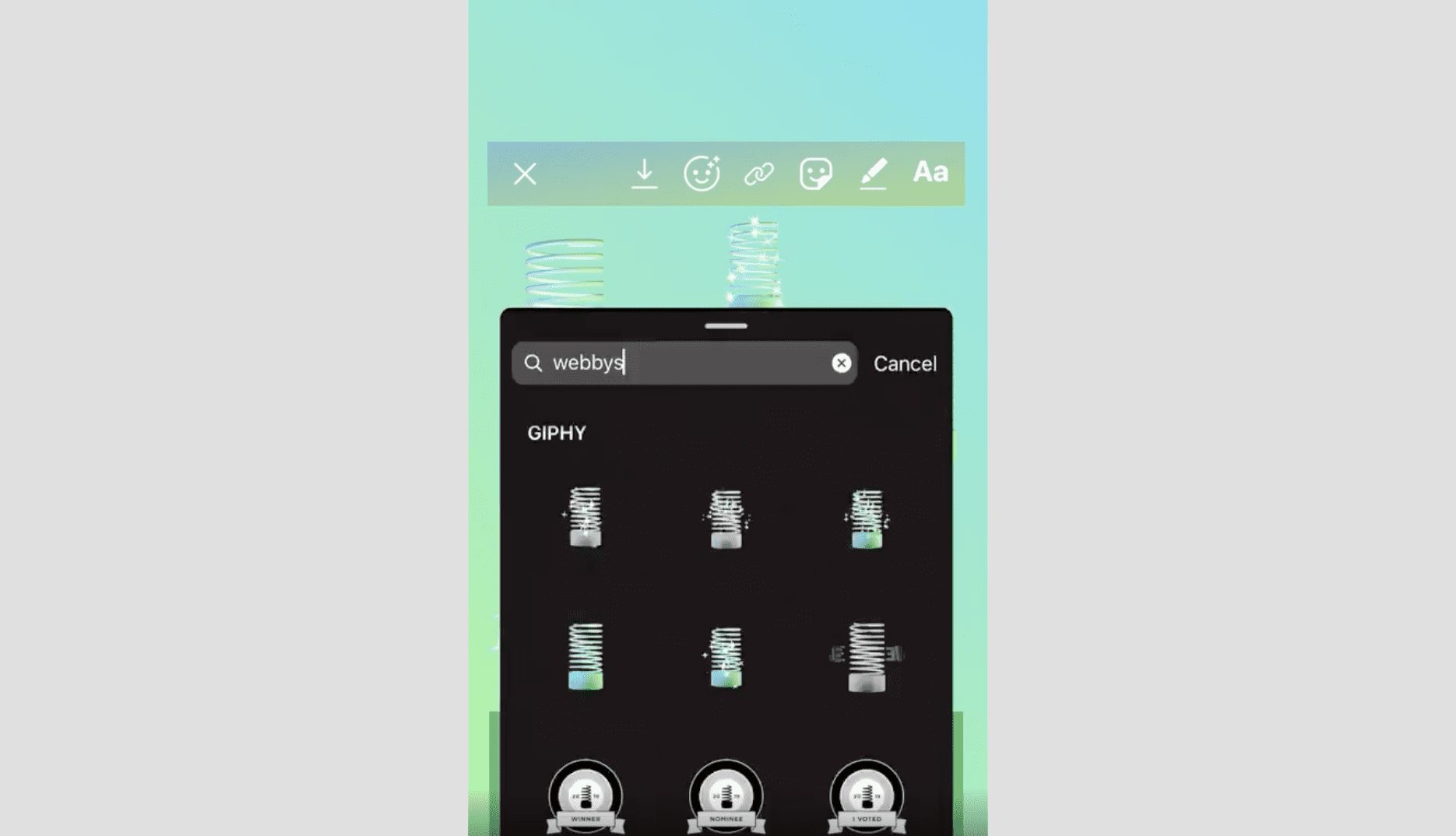 Find inspiration for your campaign on Instagram’s Reels. Look through Story Stickers for polls, countdowns, questions, and be sure to include the Webby Stickers for engaging with your audience in fun and meaningful ways.